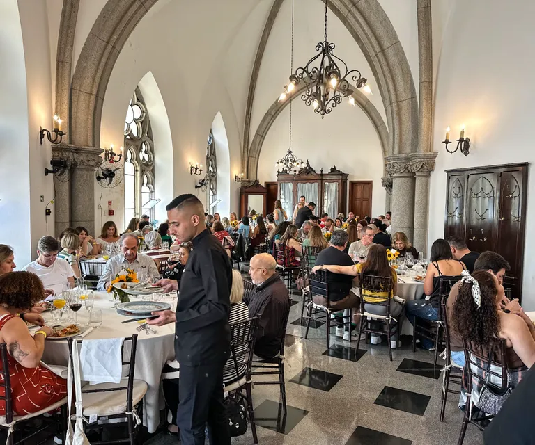 Combine gastronomia sofisticada com fé, arte e cultura em um dos cartões postais mais famosos de São Paulo. O brunch inicia‑se às 11h aos domingos (com Missa) ou às 12 h aos sábados, com mesas redondas compartilhadas para até 10 pessoas. Embora chamado de “brunch”, o cardápio oferece mais de 20 opções de almoço, inclusive vegetarianas, com bebidas incluídas – espumantes, vinhos, refrigerantes, sucos e água. Os Veganos devem observar que as opções são limitadas.